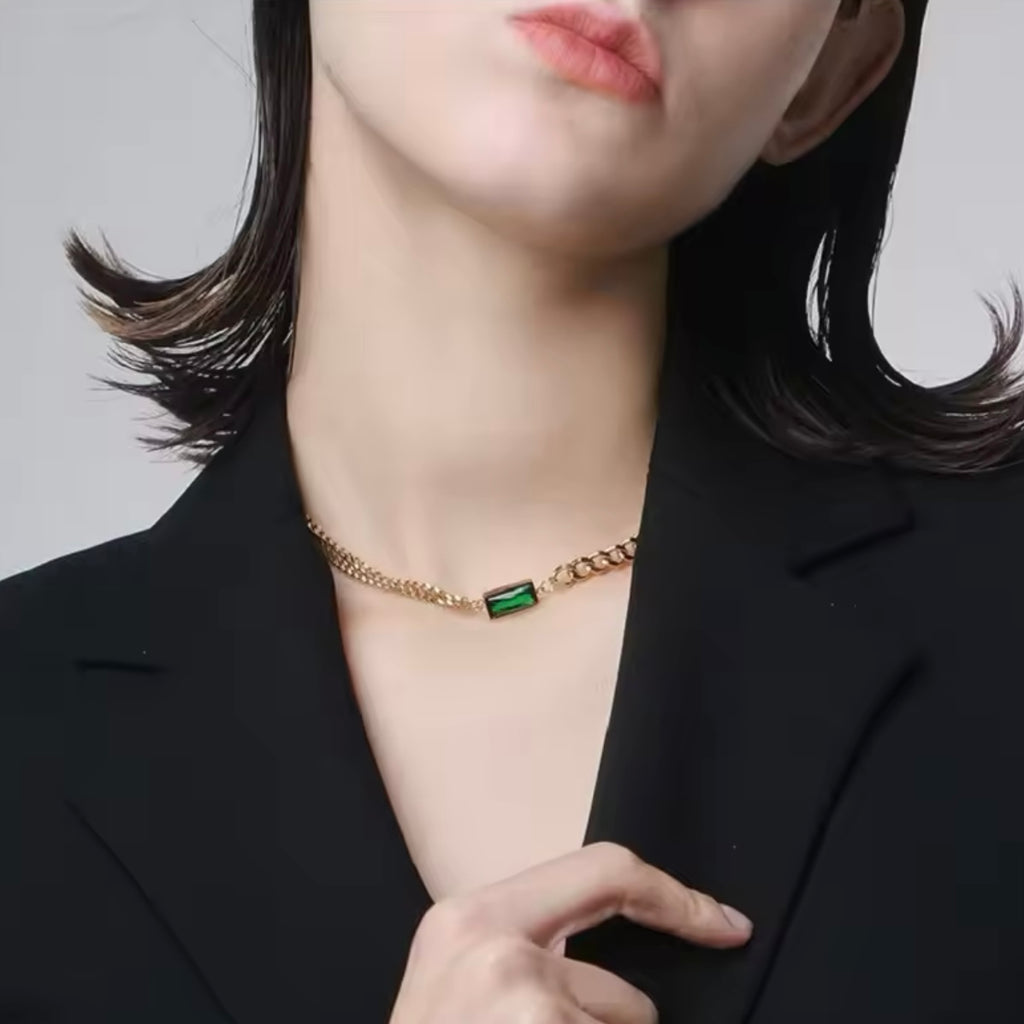 Stainless Steel Square Green Crystal Zircon Necklace Bracelets & Earrings
